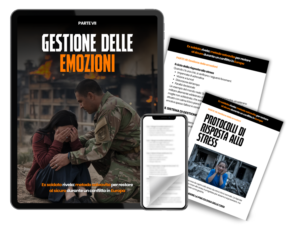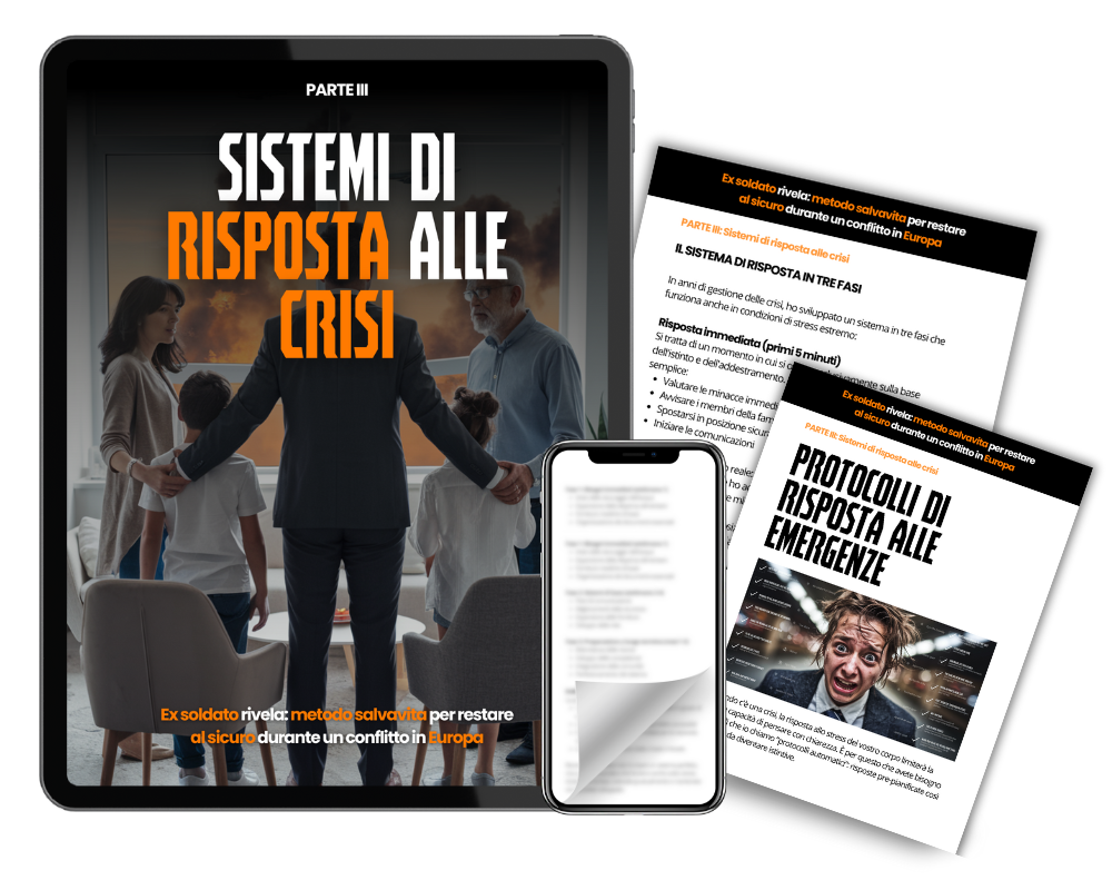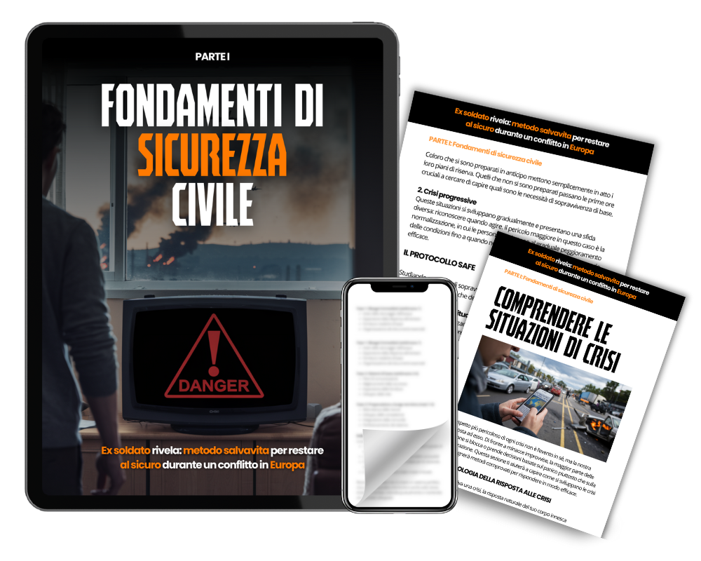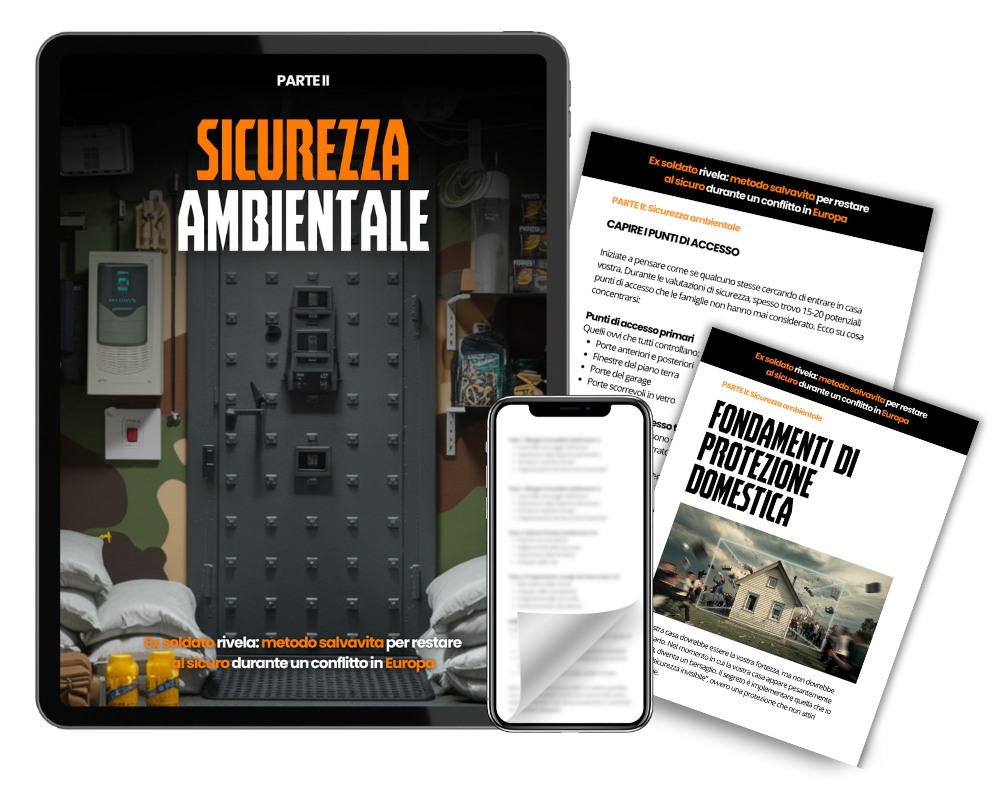 Imparate a SOPRAVVIVERE durante i conflitti, a padroneggiare i protocolli di sicurezza essenziali, a gestire le situazioni di crisi, a mettere in sicurezza la vostra casa e a prendere decisioni lucide sotto pressione - SENZA attrezzature costose, sicurezza privata o rischiose soluzioni fai-da-te.