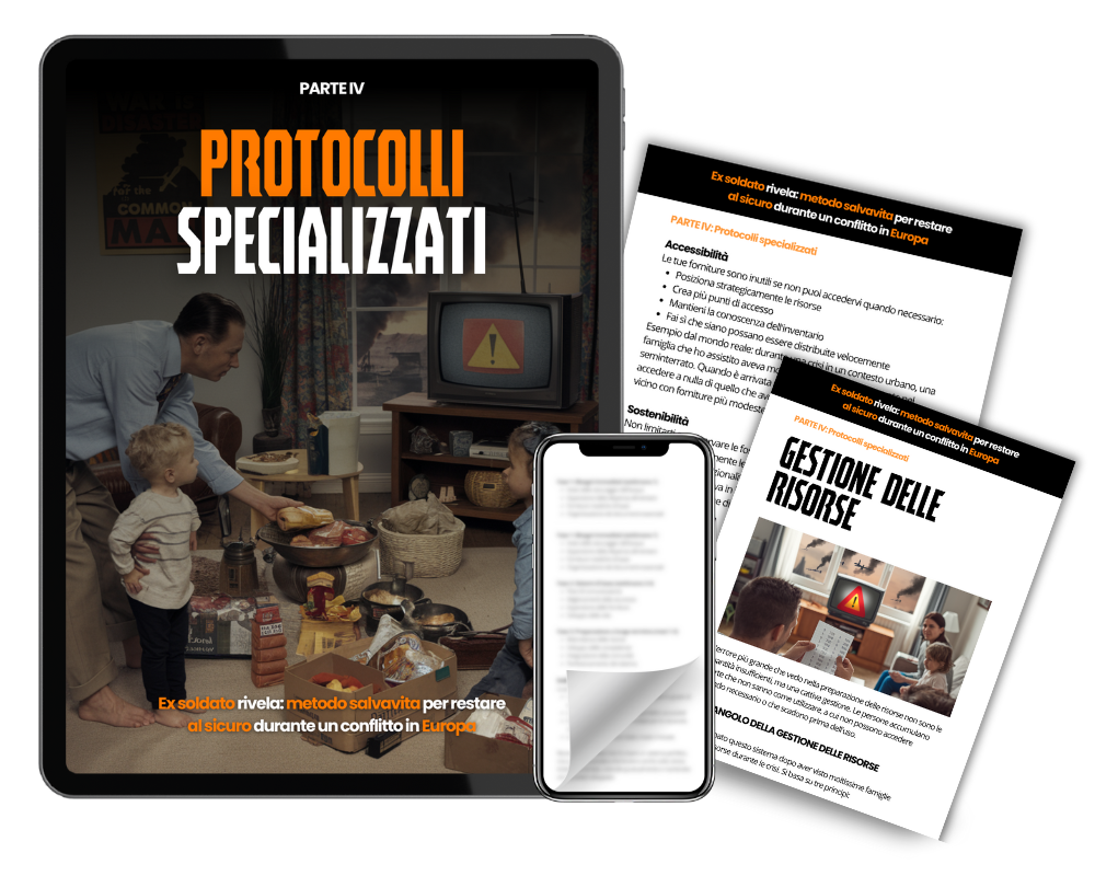 In questa guida vi svelerò TUTTO. Tutti i segreti che i "prepper" pensano di conoscere ma che non conoscono. Tutti i protocolli semplici e diretti che terranno la vostra famiglia al sicuro quando gli altri saranno nel panico.