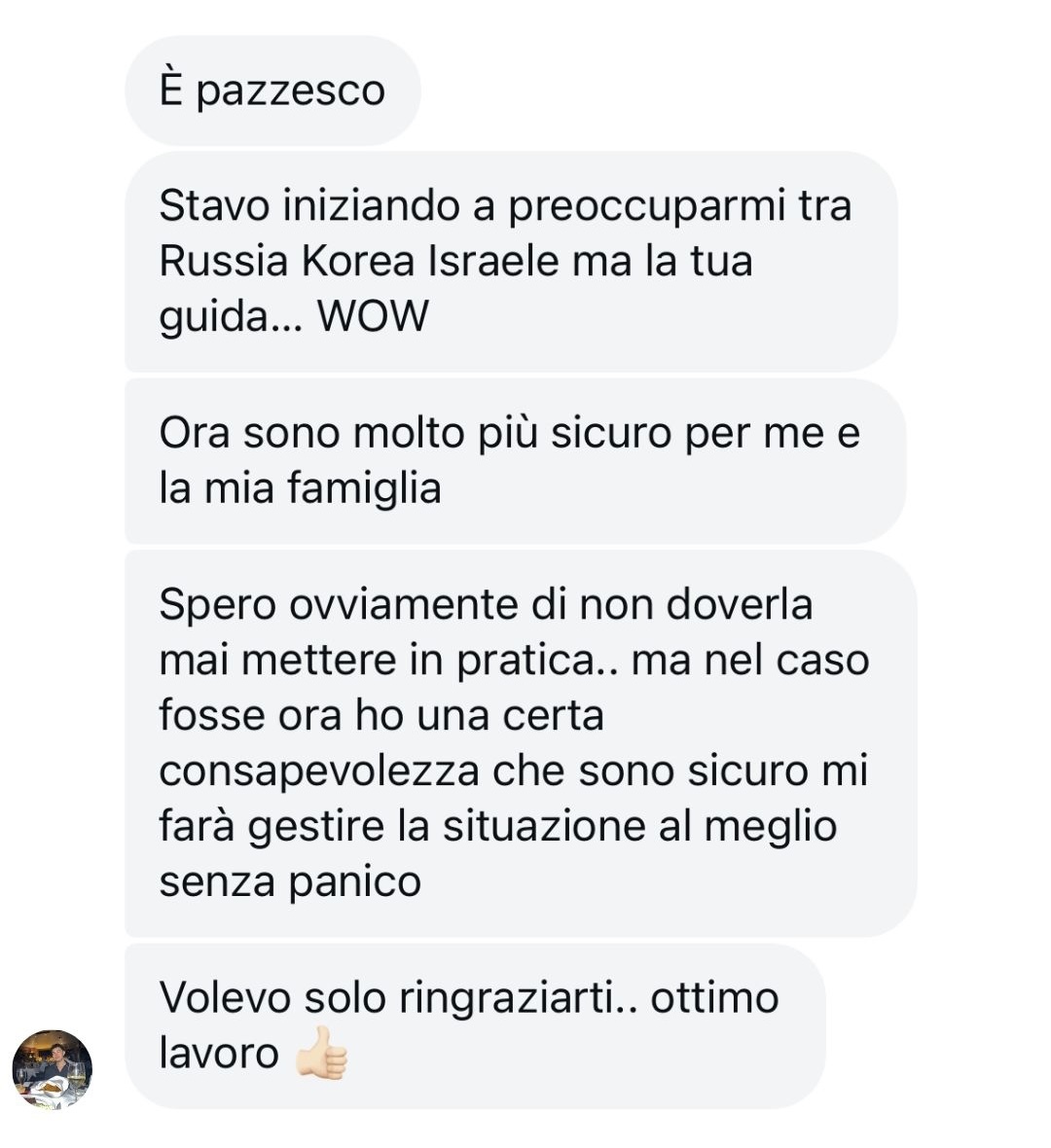 La nostra più grande preoccupazione era quella di non sapere cosa fare in caso di crisi. Ora mi sento più forte, più consapevole delle corrette procedure di sicurezza e capace di prendere buone decisioni sotto pressione. La guida ci ha aiutato a creare piani pratici senza diventare paranoici. Grazie Matteo per aver condiviso la tua esperienza!